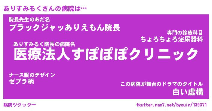 | 胡散臭い通販商品みたいなあだ名 | 『億万長者になれる霊験あらたかなお札…その名も「ありすみるく」』 |
