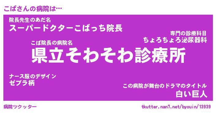 | 男性向けラノベタイトル風あだ名 | 『こばの憂鬱』『ノーゲーム・ノーコバ』 |
