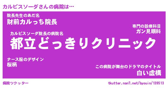 カルピスソーダ院長の病院名