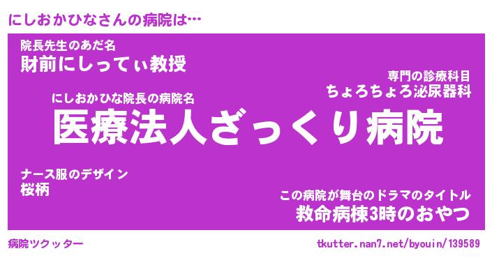 | ヘコむあだ名 | 『にしっふぃ~』『酢こんぶ』 |