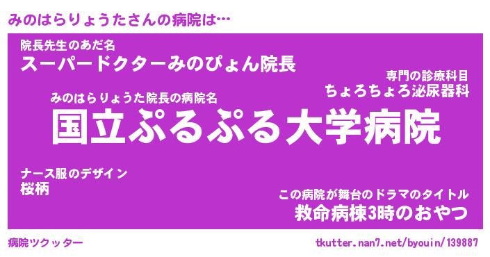 | 男性向けラノベタイトル風あだ名 | 『みのはらりょうたの憂鬱』 |