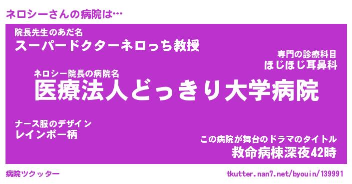 | 意味不明あだ名 | 『ペロリンネロシー』『永久保存ネロシー』 |