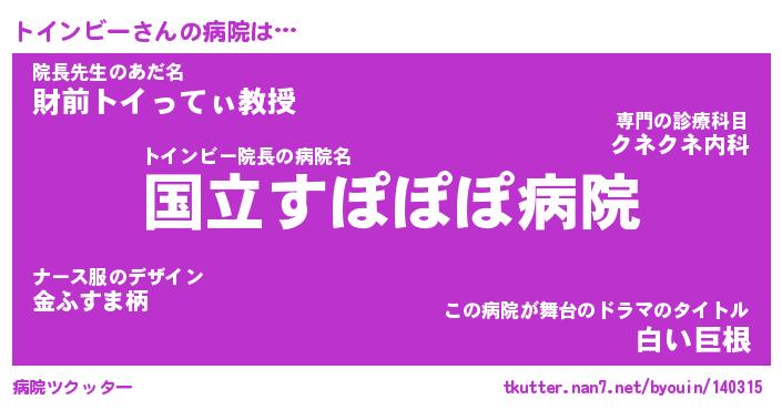 | 2回繰り返すあだ名 | 『トイトイ』『トトイイ』『きんきん』 |