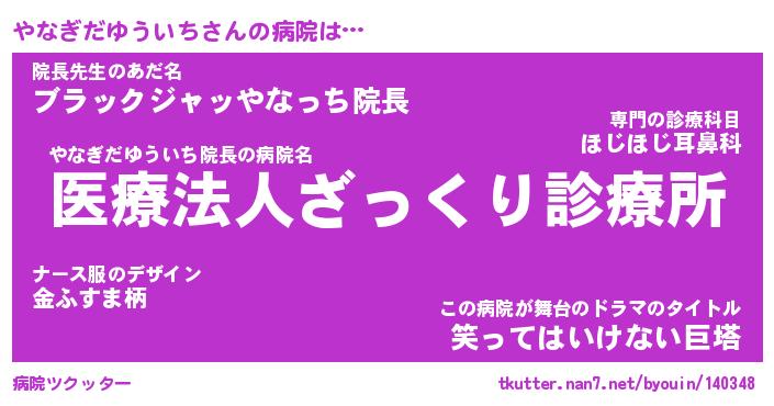 | 伝説のあだ名 | 『封印されしスナイパーやなぎだゆういち』 |