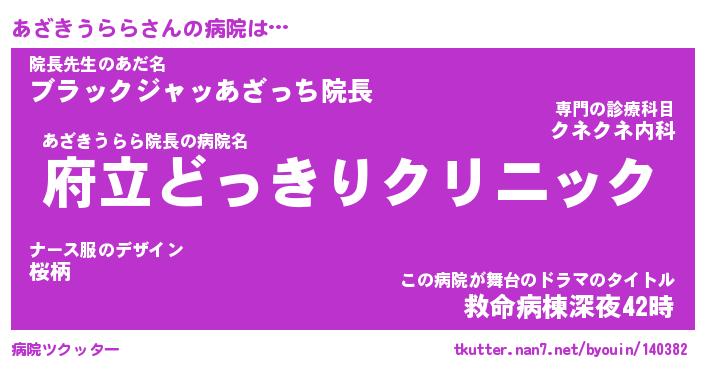 | ヒーロー風カッコイイあだ名 | 『スーパーアザキウララ』『幻影騎士アザ』 |