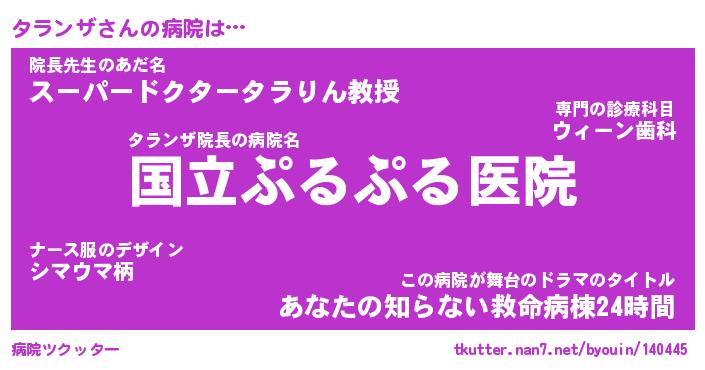 | 男性向けラノベタイトル風あだ名 | 『タランザの憂鬱』 |