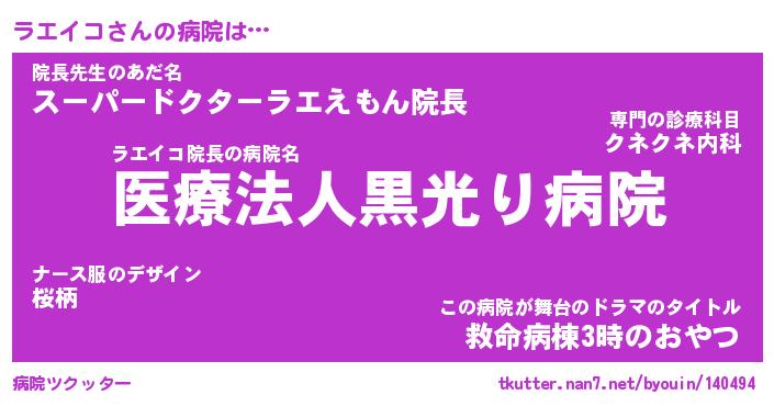 | ヘコむあだ名 | 『ラエにー』『つくし』『ラエぷりん』 |