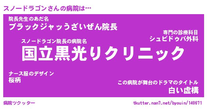 | 男性向けラノベタイトル風あだ名 | 『スノードラゴンの憂鬱』 |