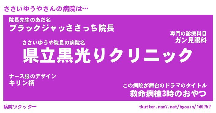 | ヒーロー風カッコイイあだ名 | 『スーパーササイユウヤ』『幻影騎士ササ』 |