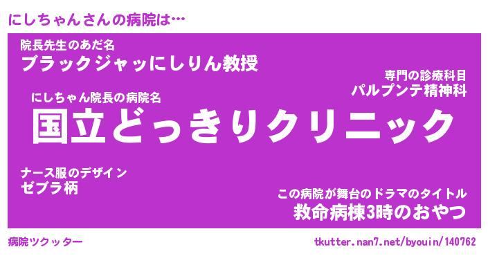 | 男性向けラノベタイトル風あだ名 | 『にしちゃんの憂鬱』 |