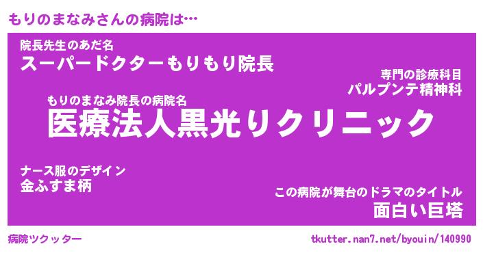 | ヘコむあだ名 | 『もりにー』『牛乳』『もりぷりん』 |