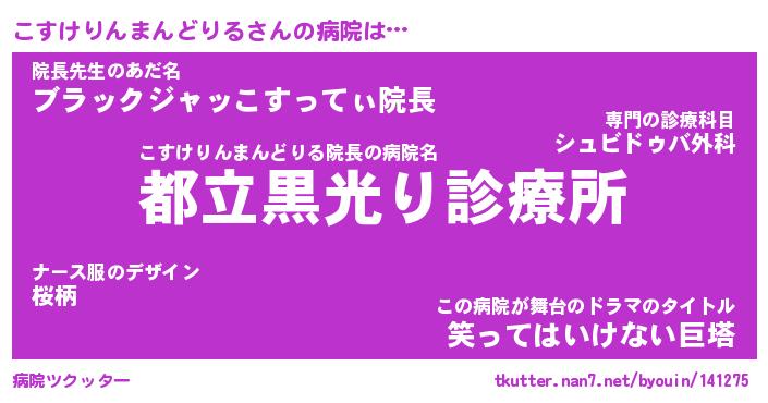 | 欧米人風あだ名 | 『マイケルこすけりんまんどりる』 |