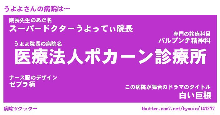 | ファンタジー風あだ名 | 『ウヨフェル』『エターナルウヨヨー』 |