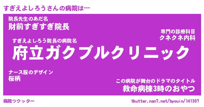 | ヘコむあだ名 | 『すぎにゅー』『酢こんぶ』 |