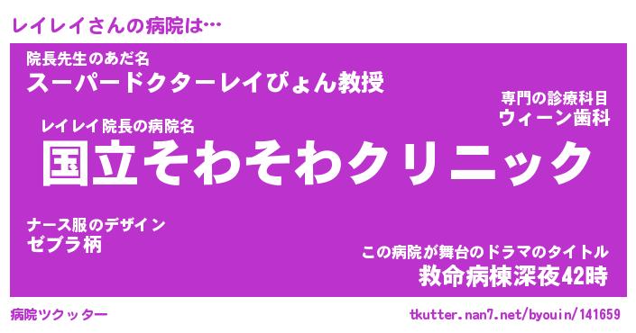 | 2回繰り返すあだ名 | 『レイレイ』『レレイイ』『いらいら』 |