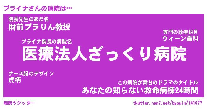 | 意味不明あだ名 | 『ペロリンプライナ』『永久保存プライナ』 |