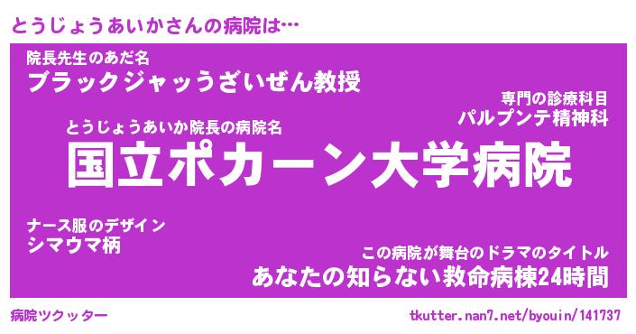 | 女子向けラノベタイトル風あだ名 | 『(仮)とうじょうあいかのやんごとなき事情』 |