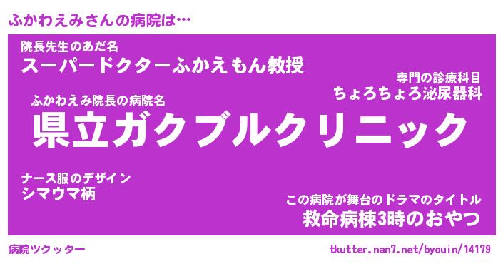 | ヘコむあだ名 | 『ふかにゅー』『つくし』『ふかっ子』 |