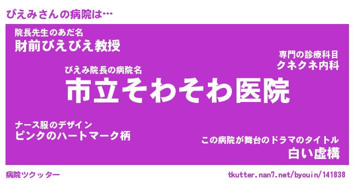 | 男性向けラノベタイトル風あだ名 | 『びえみの憂鬱』 |
