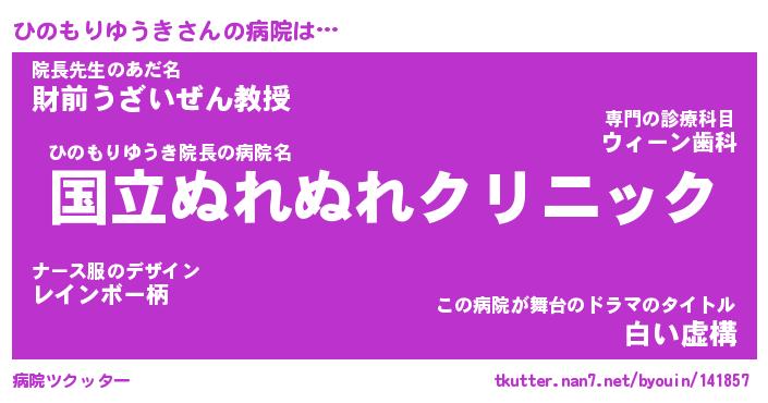 | 男性向けラノベタイトル風あだ名 | 『ひのもりゆうきの憂鬱』 |