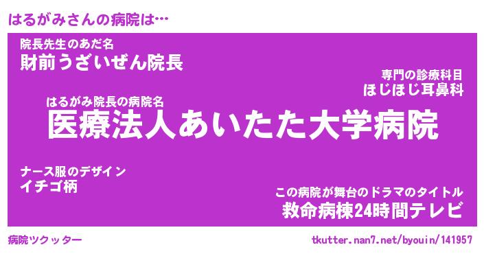 | 2回繰り返すあだ名 | 『はるはる』『ははるる』『ぬれぬれ』 |