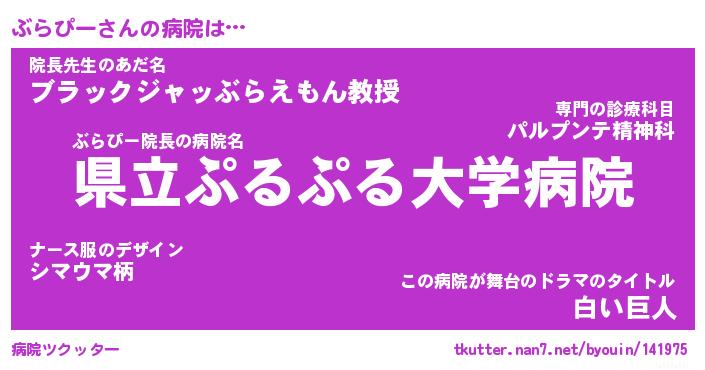 | 男性向けラノベタイトル風あだ名 | 『ぶらぴーの憂鬱』 |