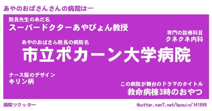 | 欧米人風あだ名 | 『マイケルあやのおばさん』 |