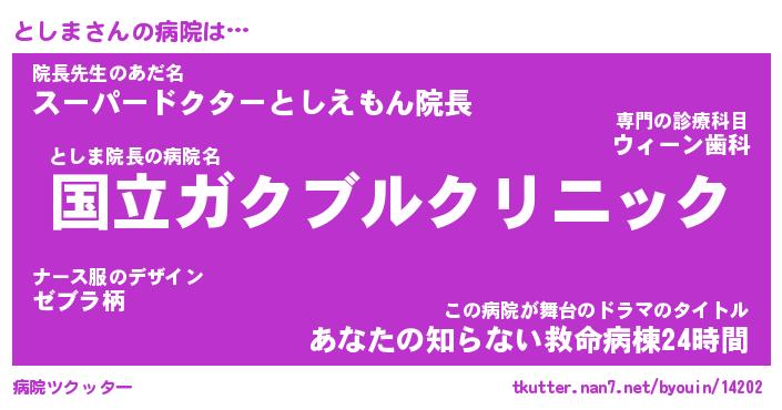 | 男性向けラノベタイトル風あだ名 | 『としまの憂鬱』 |