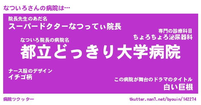 | 欧米人風あだ名 | 『マイケルなついろ』『ウサインなついろ』 |