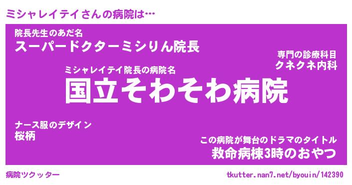 | 欧米人風あだ名 | 『マイケルミシャレイテイ』 |