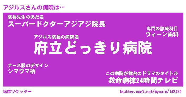 | 意味不明あだ名 | 『ペロリンアジルス』『永久保存アジルス』 |