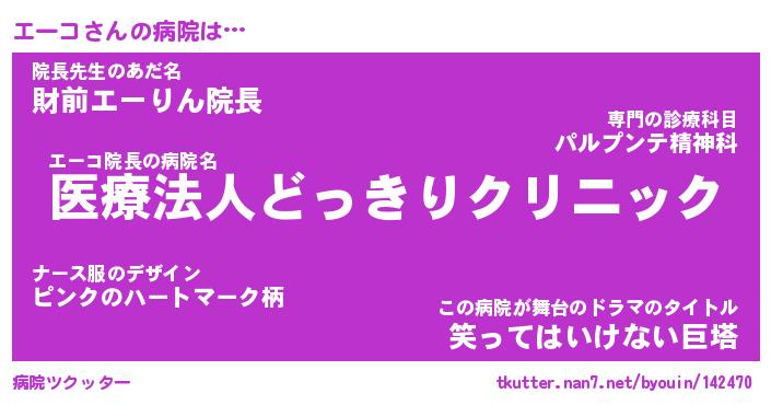 | 意味不明あだ名 | 『ペロリンエーコ』『エーコフォーエバー』 |
