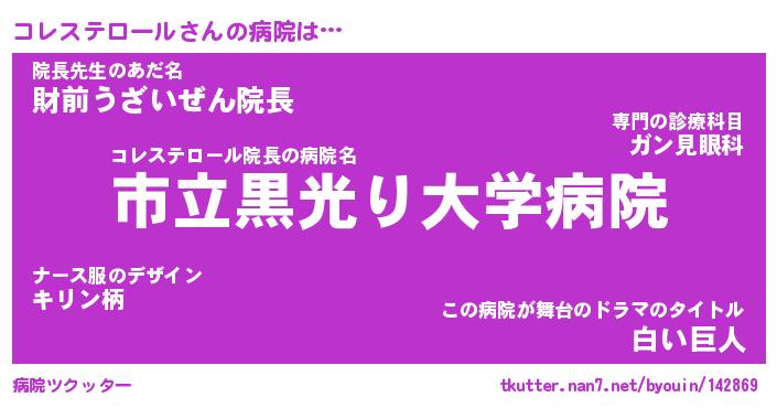 | 男性向けラノベタイトル風あだ名 | 『コレステロールの憂鬱』 |