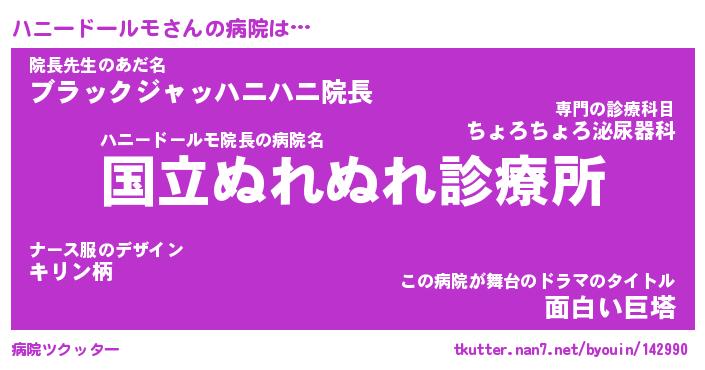 | 男性向けラノベタイトル風あだ名 | 『ハニードールモの憂鬱』 |