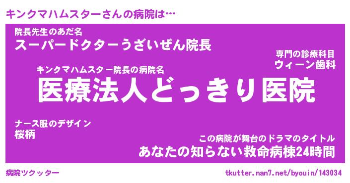 | ヒーロー風カッコイイあだ名 | 『スーパーキンクマハムスター』 |