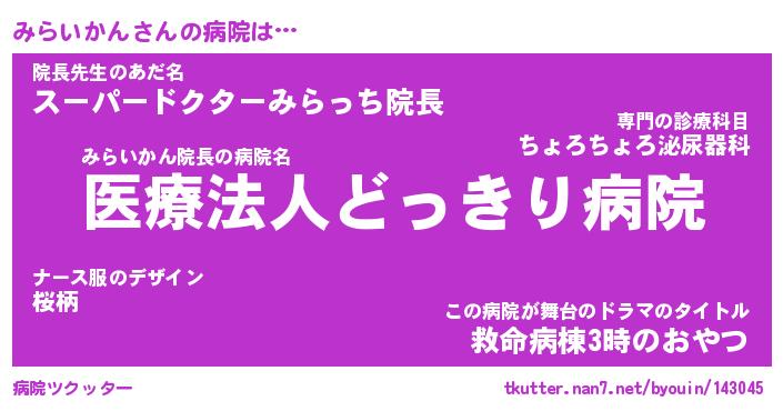 | 欧米人風あだ名 | 『マイケルみらいかん』 |
