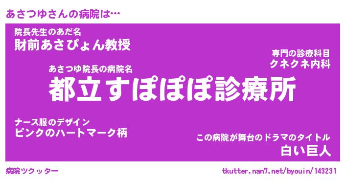 | ポケモン風あだ名 | 『アサチュウ』『アサツダネ』 |