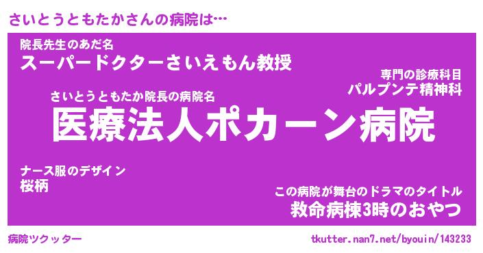 | 肩書あだ名 | 『さいとうともたか店長』 |