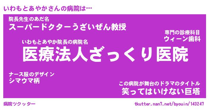 | ヘコむあだ名 | 『いわっふぃ~』『牛乳』『いわ太郎』 |