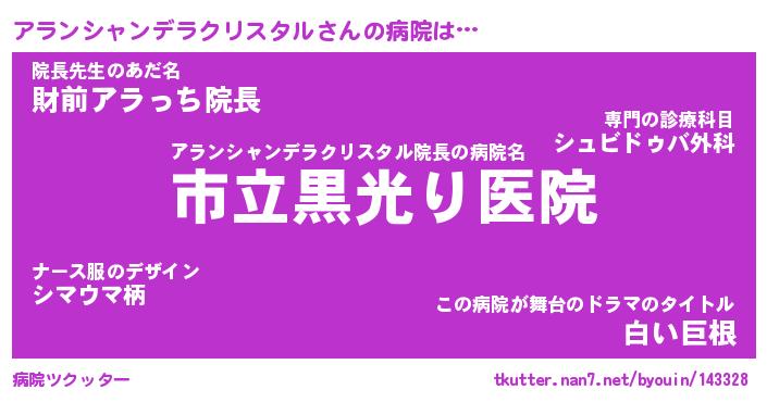 | 男性向けラノベタイトル風あだ名 | 『アランシャンデラクリスタルの憂鬱』 |