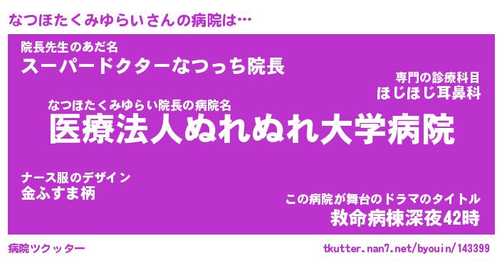 | 胡散臭い通販商品みたいなあだ名 | 『億万長者になれる水晶球…その名も「なつほたくみゆらい」』 |