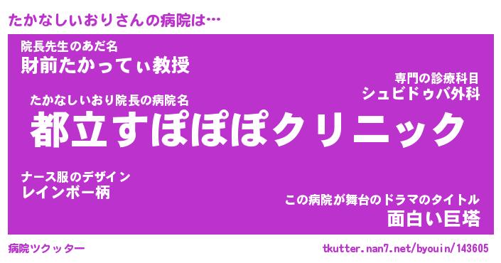 | 恥ずかしいあだ名 | 『プリティーたかなしいおり』『たかちん』 |