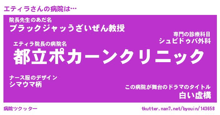 | 意味不明あだ名 | 『ペロリンエティラ』『永久保存エティラ』 |