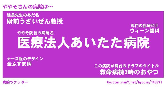 | 呪いの病院の様だw …「あさぎ」 | 3月30日 10:32 |