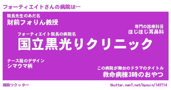 | 男性向けラノベタイトル風あだ名 | 『フォーティエイトの憂鬱』 |
