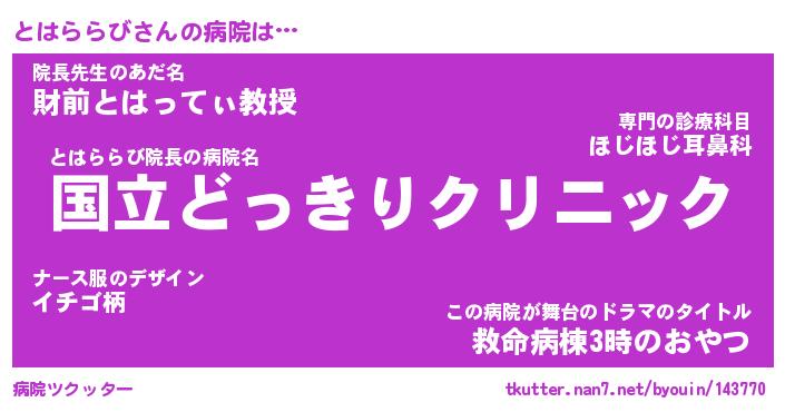 | ヒーロー風カッコイイあだ名 | 『スーパートハララビ』『幻影騎士トハ』 |