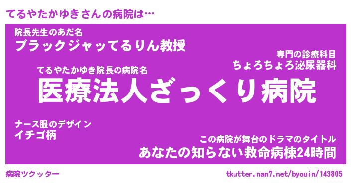 | 肩書あだ名 | 『てるやたかゆき御曹司』 |