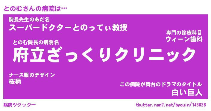 | ポケモン風あだ名 | 『トノチュウ』『トノムダネ』 |