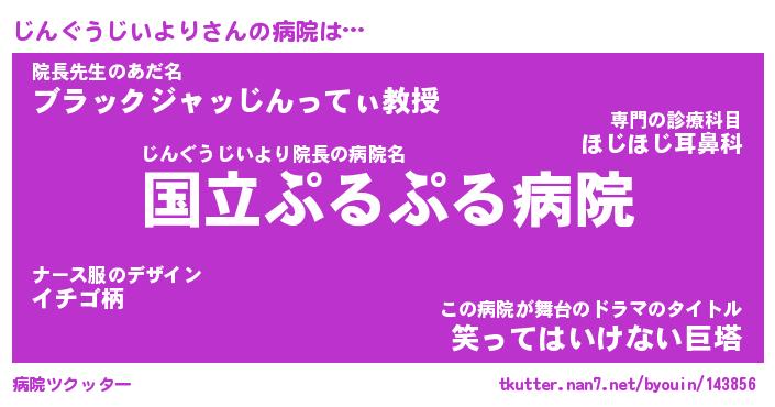 | 男性向けラノベタイトル風あだ名 | 『じんぐうじいよりの憂鬱』 |