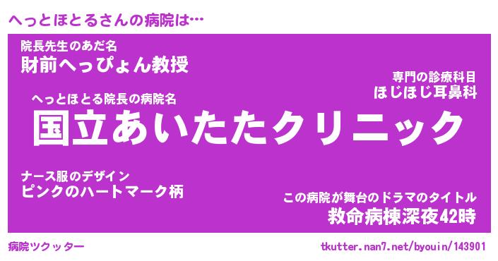 | 伝説のあだ名 | 『伝説のスナイパーへっとほとる』 |